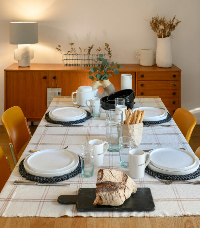 Nappe à carreaux avec finition frangée et délavage vintage . Cette nappe apporte une touche tendance et décorative à votre table.