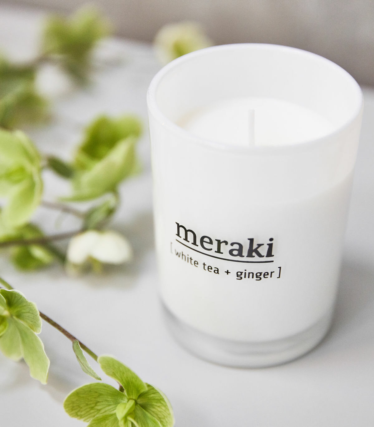 Bougie parfumée de la marque Meraki au doux mélange de thé blanc et de gingembre.